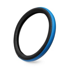 Чехол руля комбинированный каркасный гладкий, черно-синий, обхват 9.5 см, размер 37 - 39 см